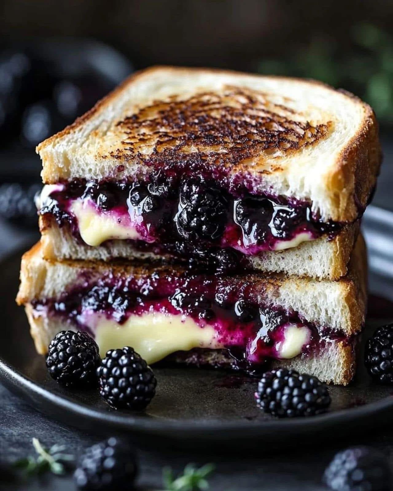 This gourmet grilled cheese combines creamy brie with a rich blackberry balsamic jam and fresh thyme for a sandwich that’s perfectly melty, tangy, and bursting with flavor. It’s a unique twist on a classic that’s sure to impress!