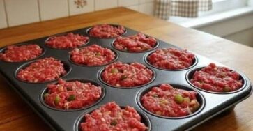 It looks like you’ve uploaded an image showing a muffin tin filled with raw ground meat mixture — possibly for…