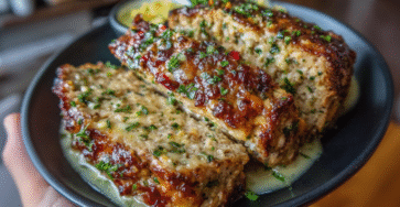 Juicy garlic parmesan chicken meatloaf with herbed crust and creamy glaze—perfect for a flavorful, comforting dinner the whole family will…