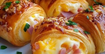 Ham and Cheese Croissant Rolls Deliciously flaky croissants filled with creamy cheese and savory ham – perfect for breakfast, brunch,…