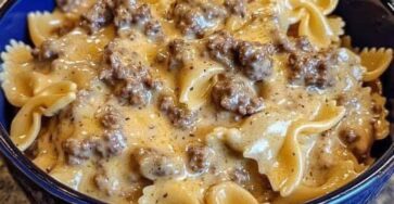 Creamy Beef and Bowtie PastaIngredients 1 lb ground beefSalt and pepper, to taste1/2 medium onion, diced2 cloves garlic, minced3 cups…