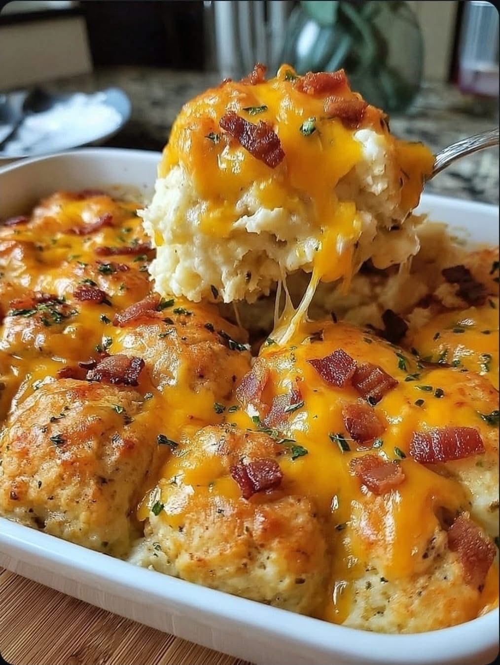 · Don’t Overcook the Biscuits: The top of the biscuits will look done before the bottom layers are fully cooked. To test, pull up a biscuit piece from the center; the dough underneath should be cooked through, not raw and doughy.