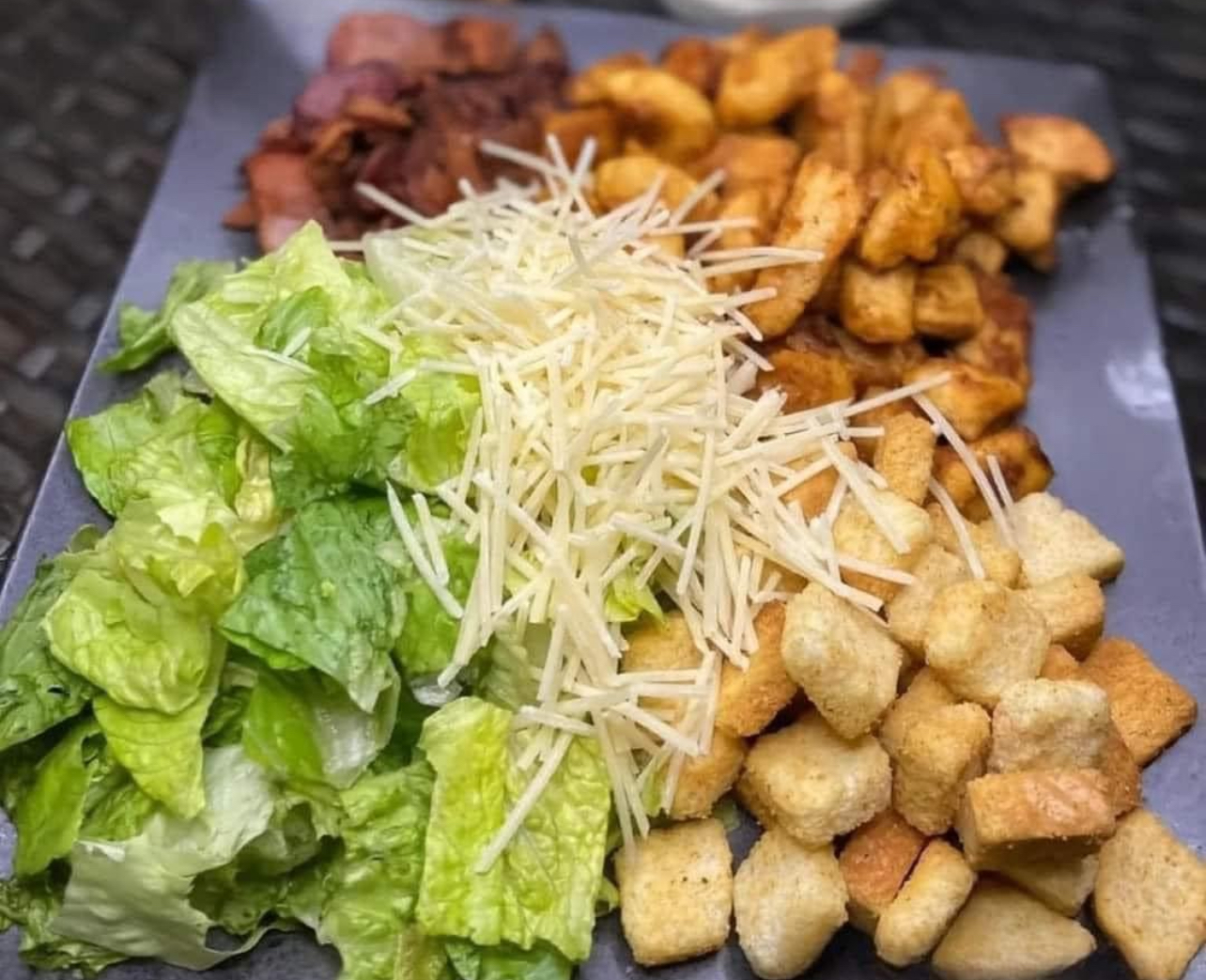 - Add the prepared dressing and toss to combine. Add the croutons (optional) and garnish with Parmesan cheese. Serve immediately or refrigerate, covered, until ready to serve.