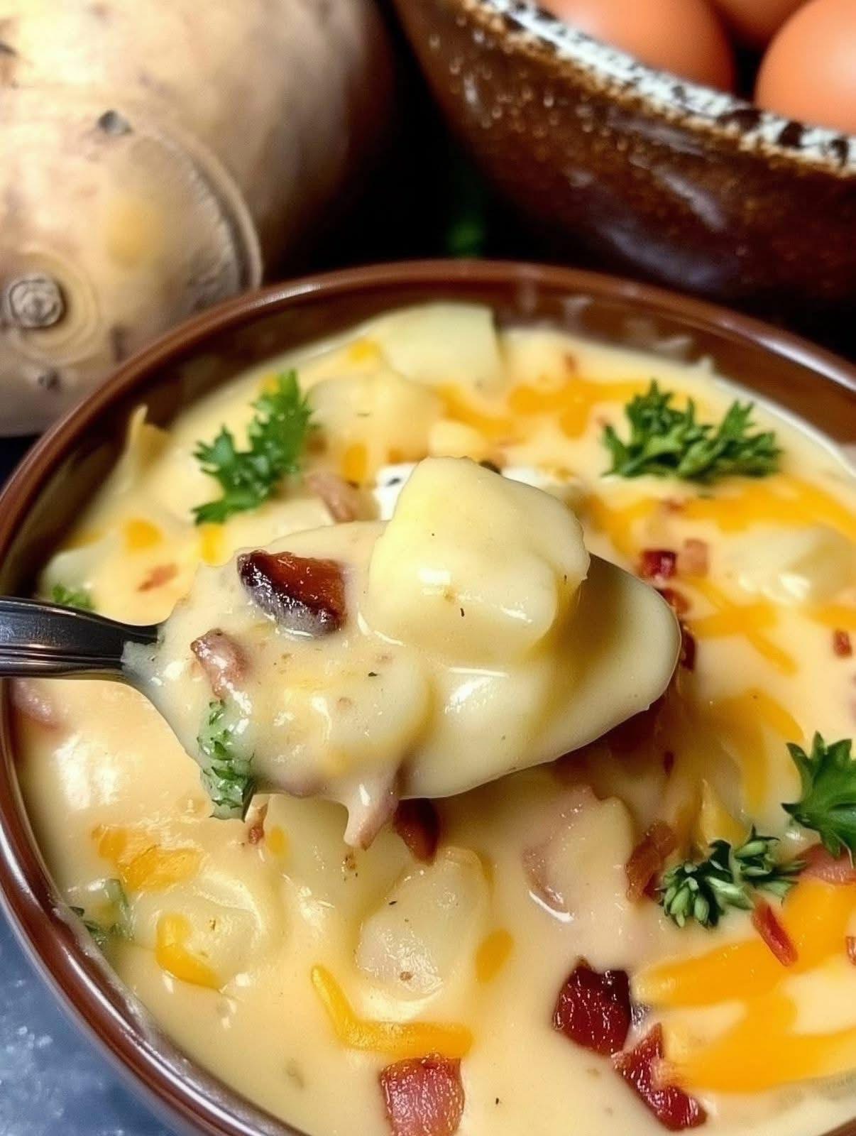 - Serve: Ladle the soup into bowls and top with the reserved crispy bacon, a dollop of sour cream, a sprinkle of extra cheese, and a generous amount of green onions.